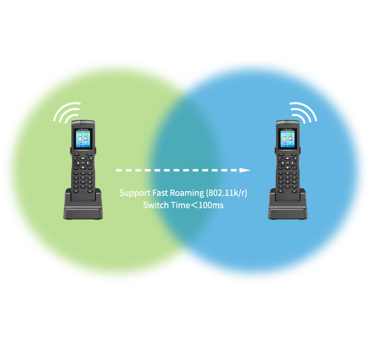 La prise en charge de l'itinérance rapide IEEE 802.11k/r permet au FIP16 Plus de basculer de façon transparente entre les bornes WiFi du bâtiment, sans interruption de la communication en cours.