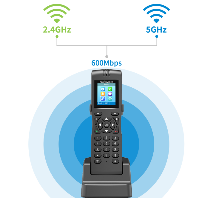 La compatibilité avec les deux bandes WiFi offre une flexibilité totale de déploiement. Le FIP16 Plus se connecte à n'importe quel point d'accès de l'entreprise et s'affranchit de tout câblage, pour une téléphonie VoIP pleinement mobile.